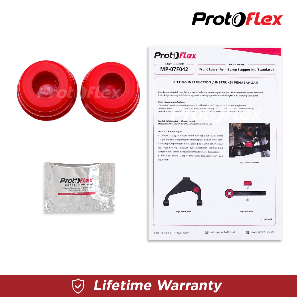 Bump Stopper Protoflex di desain untuk menggantikan Karet Stopper original Anda dengan bahan Polyurethane yang sangat awet. Bump Stopper ini akan berfungsi sebagai bumper empuk saat suspensi mentok, menjaga kenyamanan kabin, meredam benturan dan menghindari dari resiko kerusakan komponen suspensi lainnya sehingga lebih awet.