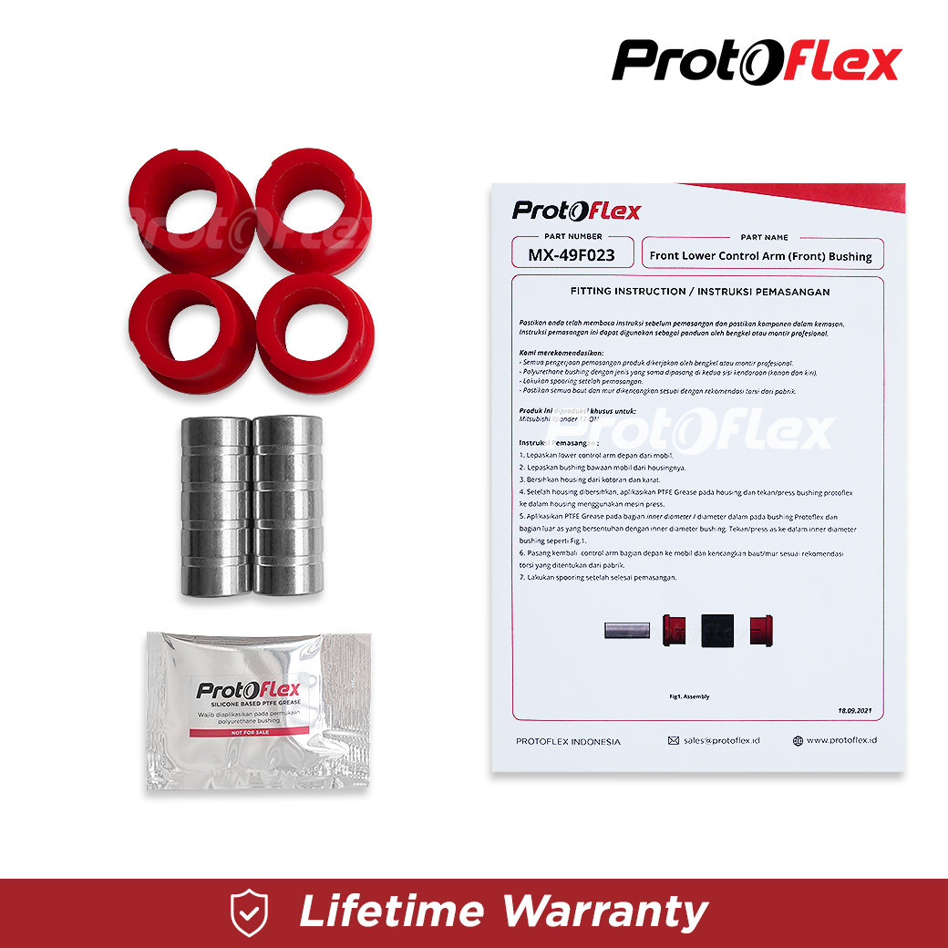 Bushing Protoflex memiliki performa dan kualitas melebihi part OEM original pabrik dan memiliki ketahanan terhadap suhu, air, kimia dan cuaca sehingga dapat bertahan seumur hidup mobil.